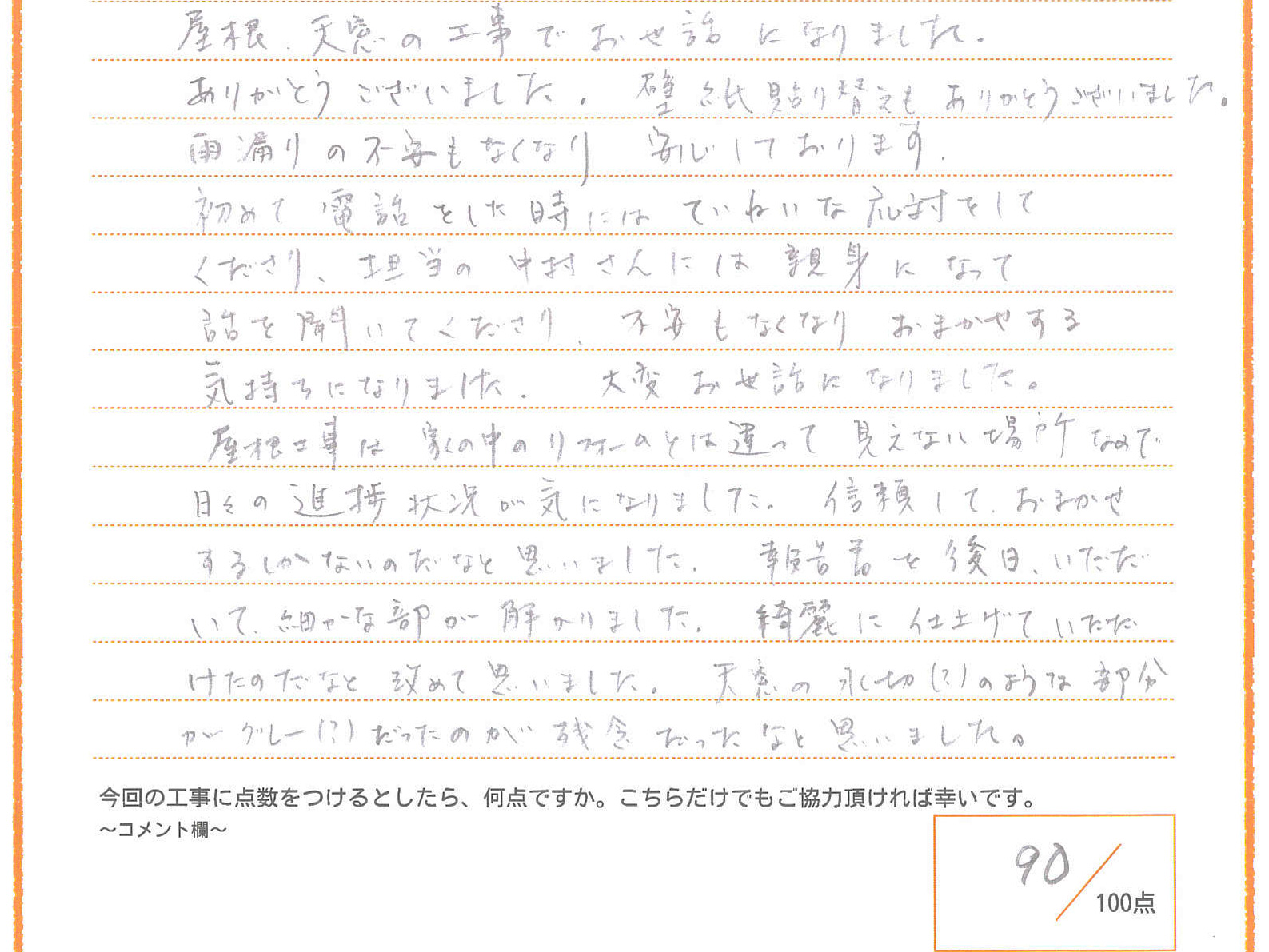 施工以外に気になるところを教えて下さったり、見えない瓦も正直に言っていただき交換してくださいました