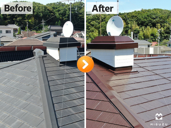 千葉市中央区で表層剥離が進んだパミール屋根をガルバ鋼板 ”シルキーG2” でカバー