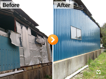 市原市大厩で倉庫外壁・屋根のガルバリウム波板張替え