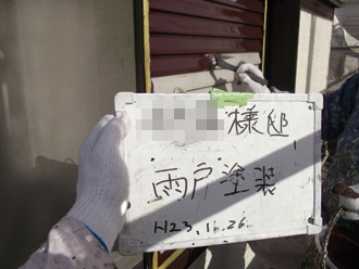 | つづいて、細部塗装に移っていきます。 こちらは雨戸塗装の様子です。 |