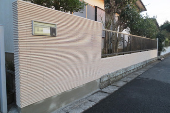 塗装が剥がれた門塀にタイルを張りました TOEX細割ボーダー