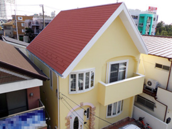 屋根は断熱遮熱塗料のガイナで、外壁以外の細部はシリコン塗装を行いました