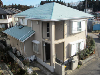 外壁を汚れにくい塗料ナノコンポジットW、屋根を遮熱塗料のガイナで塗装